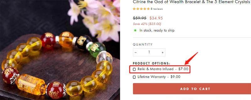Each bracelet, necklace, and other accessories are tagged with certain tags such as health, career success, wealth, happiness, positivity, etc. These provide people with spiritual strength and relieve anxiety and worries. Buddha&Karma also offers a custom option to choose whether the product needs to be infused with spiritual energy, increasing sales.