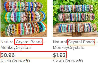 A regular crystal bracelet is retailed at $1-2 on Etsy. But when labeled with meanings such as “wealth,” “love,” “good luck,” “health,” etc., it can be sold for $10+ and several tens of dollars. These “inspirational” crystal products resonate with people and effectively meet certain psychological expectations. This psychological expectation is hard to regulate within a specific price range. Prices from tens to hundreds of dollars are feasible, easy to generate profits.